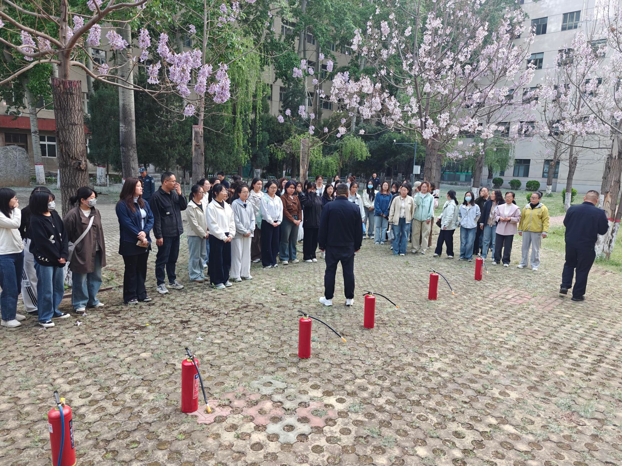 安全培训后,全体参训人员在药学院开展了安全应急演练,本次演练结合药学专业特点,预设学生在实验过程中被浓硫酸灼伤和学院实验室、办公区域突发火情两个场景,不设推演,通过实战检验师生面对紧急情况的应急处置能力和学院安全应急预案的响应能力。